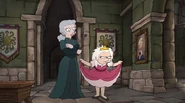As Dagmar continued to show Bean the wonders of Maru, she claimed that her own mother and father died in a double murder suicide, and that Maru's royal family suffered from insanity to a small degree. That night, the elderly population of Maru began to spew out mysterious claims about a Tiabeanie who would save Maru. That night, Cloyd and Becky announced that Bean would be participating in a ceremony to welcome her into the family. Before the ceremony could begin, Bean sneaked into the forbidden room, finding a painting that looked exactly like her, along with her severed arms. The sight was so shocking that Bean passed out.