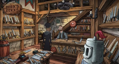 Dirk's dirks is a store in Dreamland that specializes in cutting weapons like knifes, swords, daggers, and cleavers.